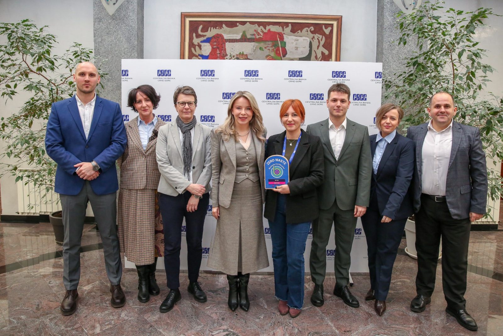 Podgorica, 06 February 2025 – The Central Bank of Montenegro (CBCG) has received the Zero Waste Business Certificate, confirming the Bank’s commitment to sustainable resource management and the systematic reduction of waste through its organizational processes and day-to-day operations. The certification was carried out in accordance with the Zero Waste Business Certification methodology of the European organizations Mission Zero Academy and Zero Waste Europe, and compliance with the criteria was verified through an external audit. With this, CBCG has become the first bank in the banking sector to be awarded the Zero Waste Business Certificate under this program, further affirming its role as an institution that, in addition to its core mandate, contributes to broader societal goals, including environmental protection and the promotion of sustainable practices.
